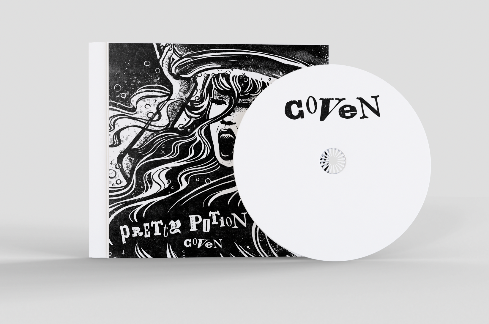 logos and branding. pretty potion A witchy punk band album concept. Logo design, album art, and poster design.