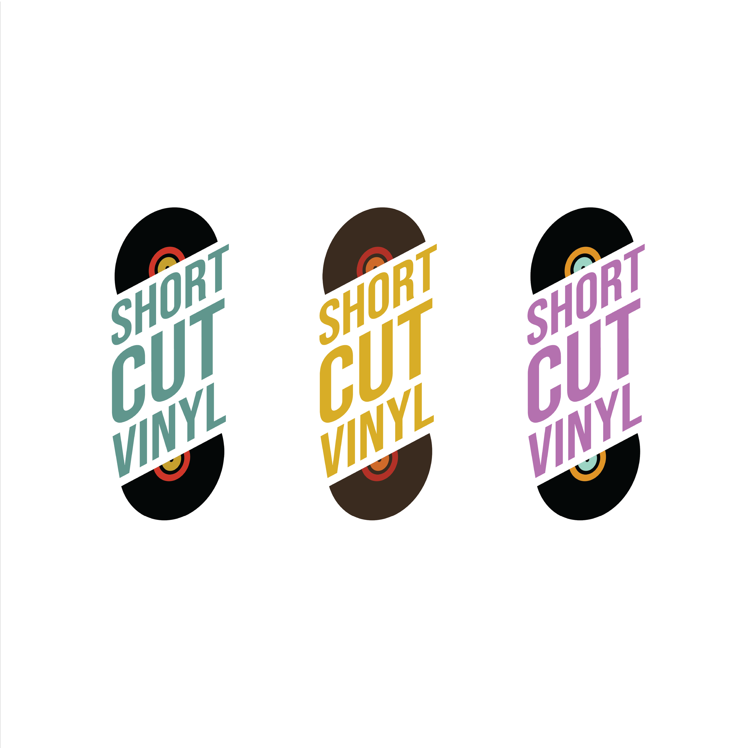 Short Cut Vinyl Logo Design: wordmarks and icons for Short Cut Vinyl, a small vinyl pressing business in Toronto, Canada.